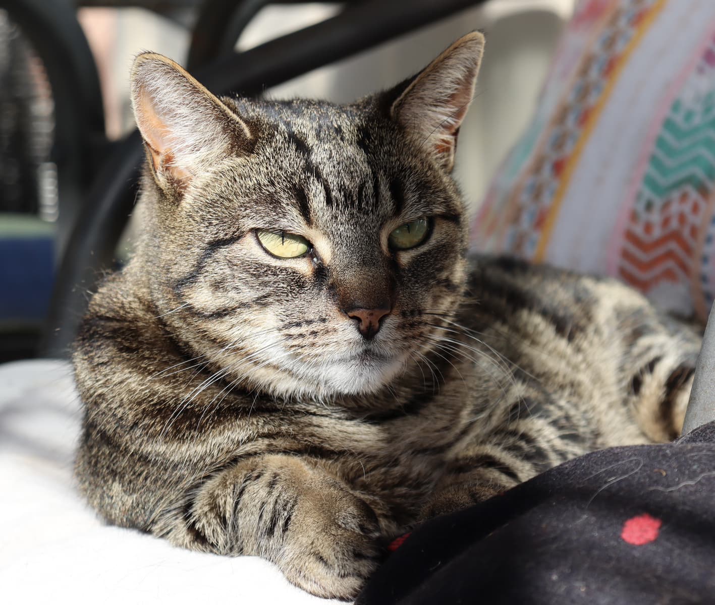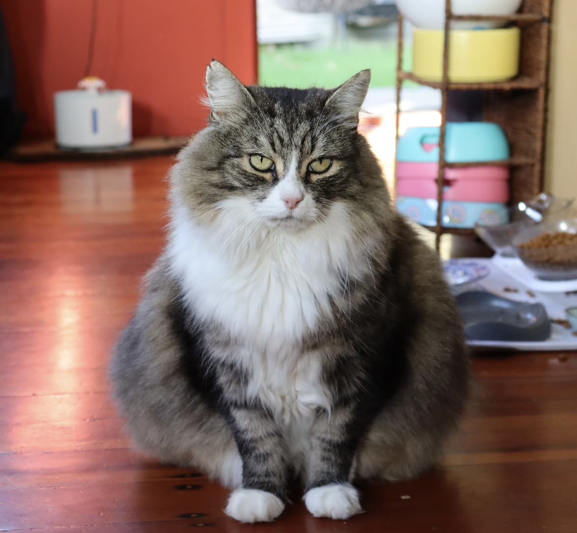 Ringo is the fluffiest cat we have ever seen. He is an adventurous soul and would embark on day-long explorations, venturing beyond the fence into the neighboring dog park. When evening fell, Ringo would return home, choosing to sleep outside on his designated chair rather than indoors. On sunny days, he would settle amidst the garden beds, skillfully blending in with the lush plants around him.